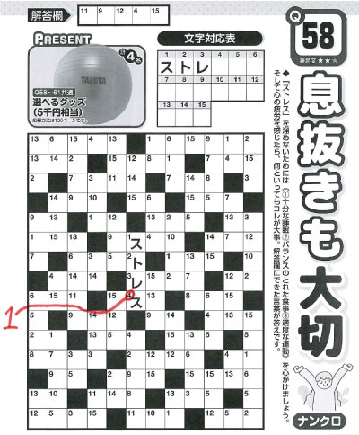Q58「息抜きも大切 ナンクロ」におきまして、
